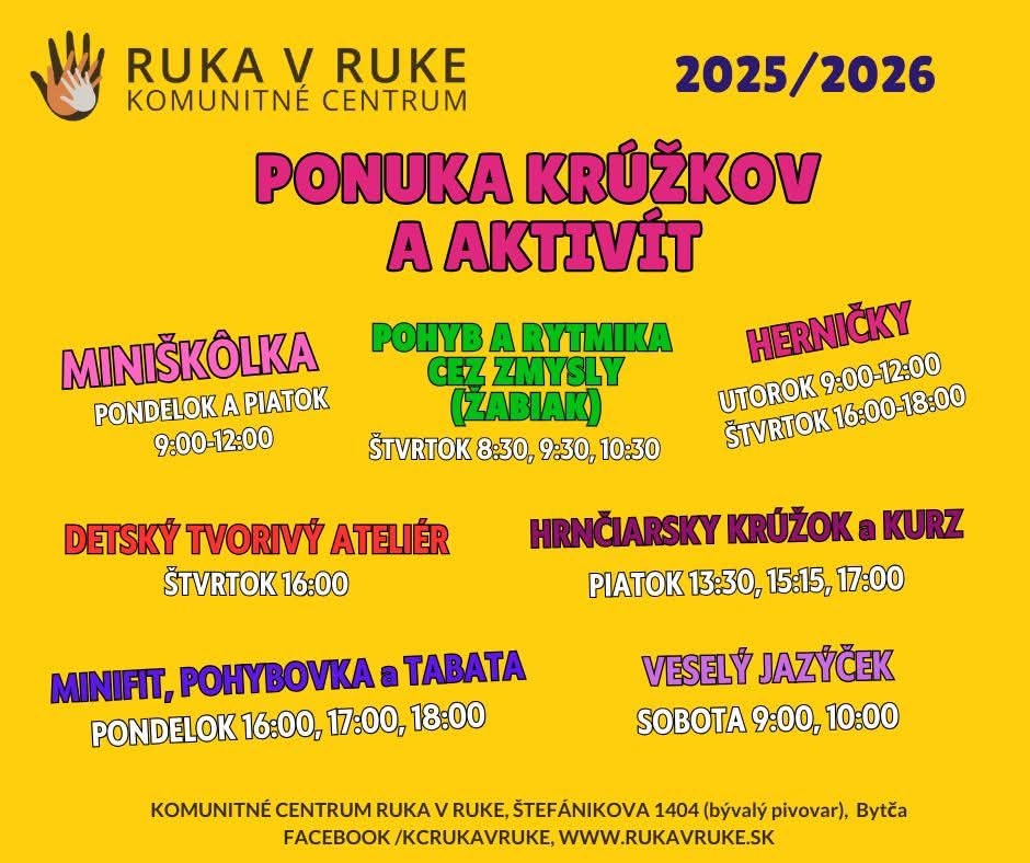 V Ruka v ruke odštartujeme 8. septembra nový ročník krúžkov, herničiek, pohybu, tvorenia a rozhovorov.