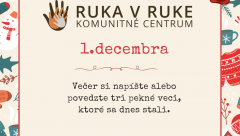 V Ruka v ruke veríme, že dobré veci vznikajú, keď sa rodiny zastavia, počujú sa a sú si nablízku.Preto sme pripravili 24 inšpirácií – malé gestá, či aktivity, ktoré prinášajú pokoj aj radosť do každodennosti.Každý deň adventu vám prinesieme jednu.Poďme prežiť tento čas spolu – ruka v ruke.