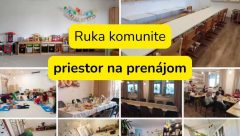 Keď zrovna neprebiehajú naše vlastné aktivity, otvárame dvere nášho centra pre vás. Hernička aj ateliér môžu slúžiť ďalším dobrým veciam – od ranného pohybu až po popoludňajšie stretnutia. Kedy je priestor voľný? Každé ráno od 6:00 do 8:00 Popoludní pondelok až štvrtok od 13:00 do 16:00Čo sa v ňom môže diať? skupinové cvičenie kruhy, stretnutia, komunitné aktivity doučovanie logopédia fyzioterapia, masáže konzultácie coworking a iné…