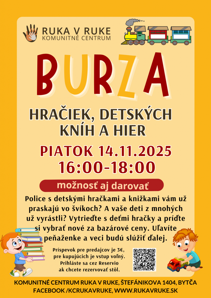 Na burze môžte kúpiť hračky za zlomok pôvodnej ceny alebo aj také, aké v obchodoch už nenájdete. Budú tu aj hračky a knižky na darovanie 😊