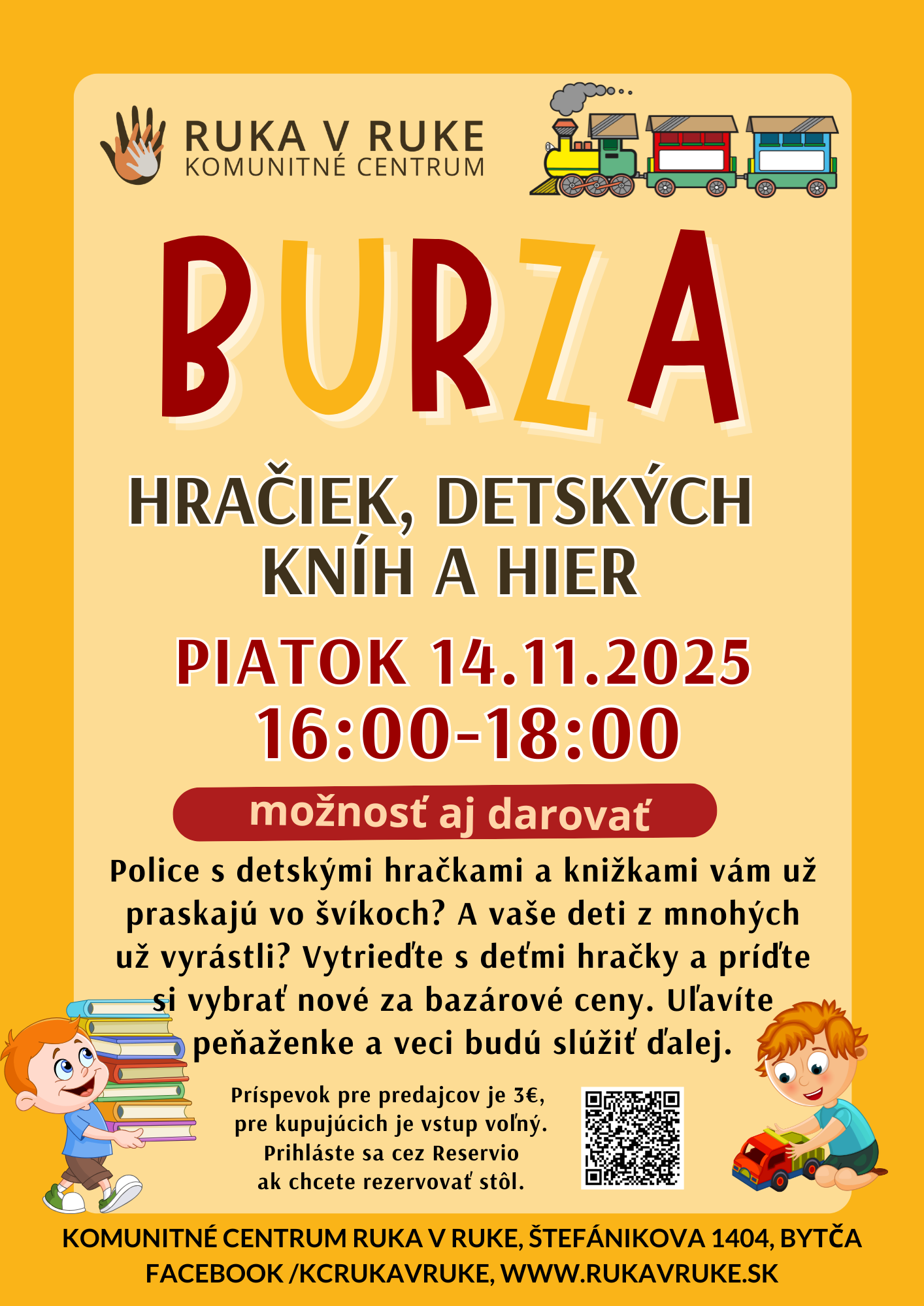 Na burze môžte kúpiť hračky za zlomok pôvodnej ceny alebo aj také, aké v obchodoch už nenájdete. Budú tu aj hračky a knižky na darovanie 😊