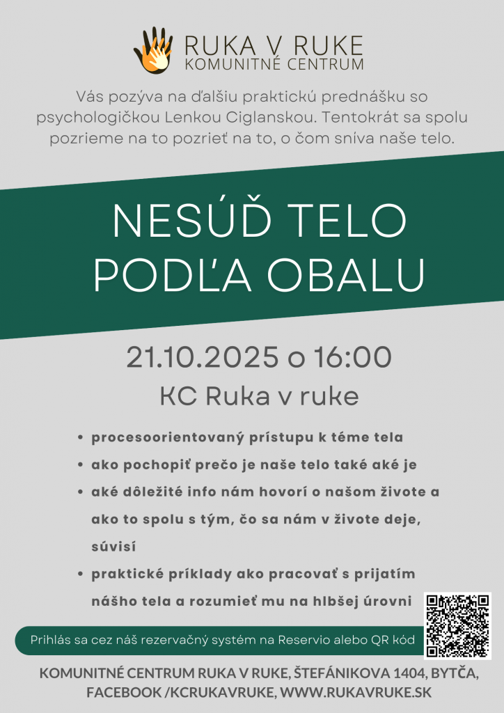 Poďme sa spolu pozrieť na to o čom sníva naše telo na prednáške so psychologičkou Lenkou Ciglanskou.